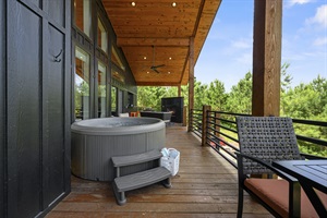 * The hot tub for 4 is under a covered deck for starry night relaxation or even a rainy day dip!