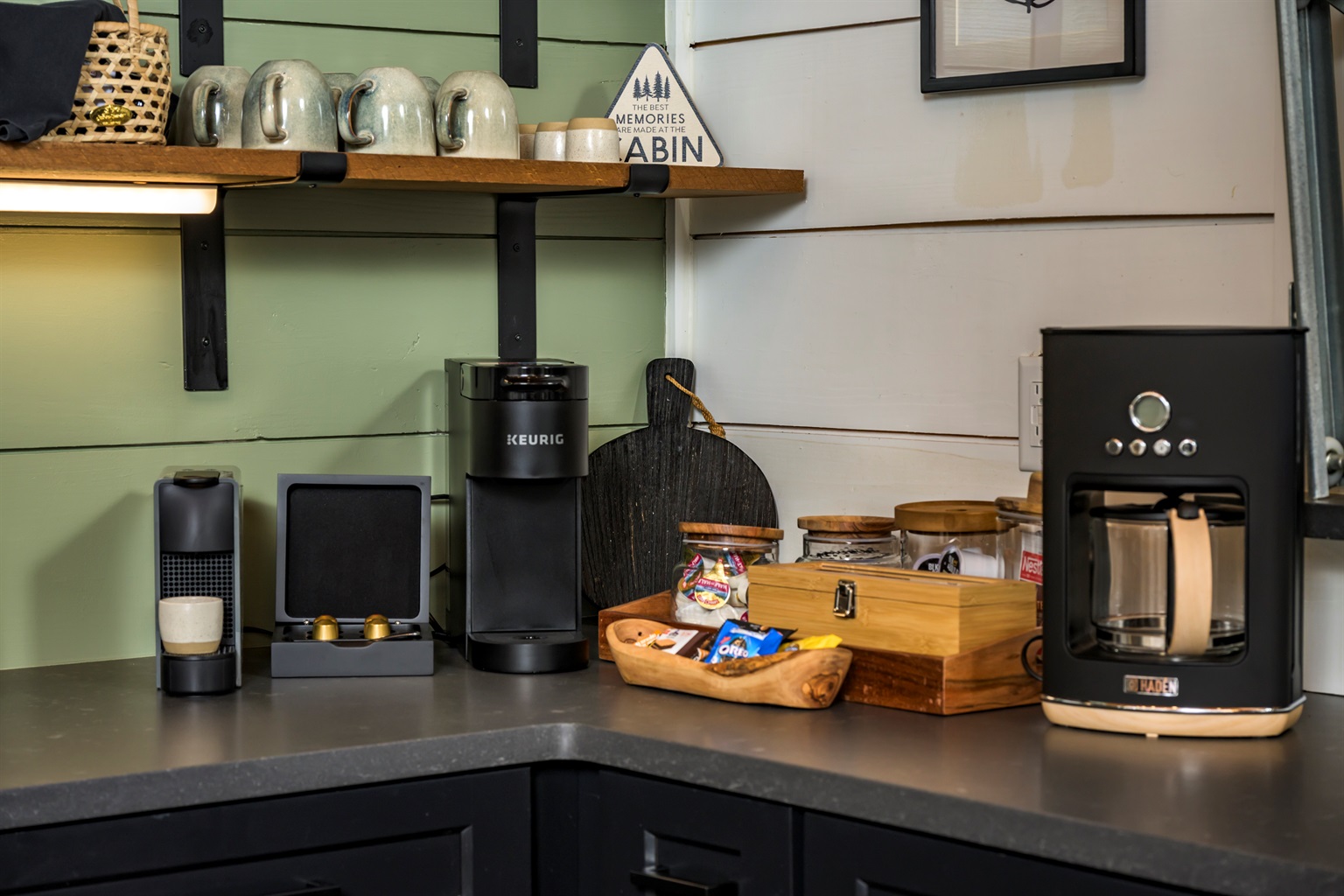 A starter supply of paper towels, toilet paper, bath soap, dishwashing liquid, trash bags, dishwasher tablets, laundry soap, coffee, coffee filters, and salt & pepper will be provided for your stay. All cabins have fully equipped kitchens, washers/dryers, towels, and linens.