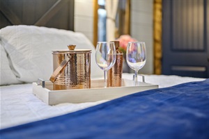 The primary bedroom has its own private ensuite bathroom with a pebble-bottom walk-in shower and a romantic claw-foot tub. There is a second guest bathroom off the living area complete with a shower so that there is plenty of room for everyone to get ready.