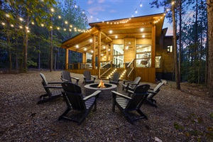 The outside living area of this cabin is so much fun! The back deck is HUGE with over 1100 sq ft of play, relaxation and dining areas! Grill out with your group or enjoy the huge hot tub. Simply relax on the luxury seating in front of the fireplace and watch the big game outdoors on the 65" big screen TV. There is also a competition-style ping pong table for hours of fun! Cocoon swinging chairs are the ultimate in relaxing outdoors and listening to the sounds of nature. Finally, enjoy a campfire in the firepit; the perfect place for making s'mores! You will have so much your group wants to do, you will wish you stayed longer!