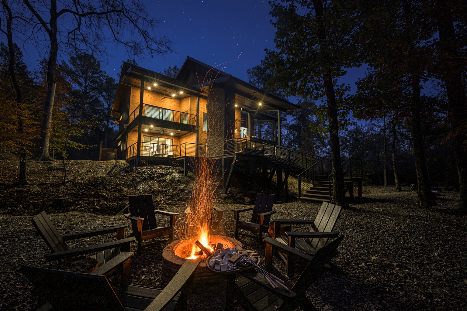 Please note that this is a forested area and there are times when the Oklahoma Forestry Service enforces a burning ban in the area. Fines can be upwards of $1000. Please check online for the current burn ban status before using the outdoor firepit.