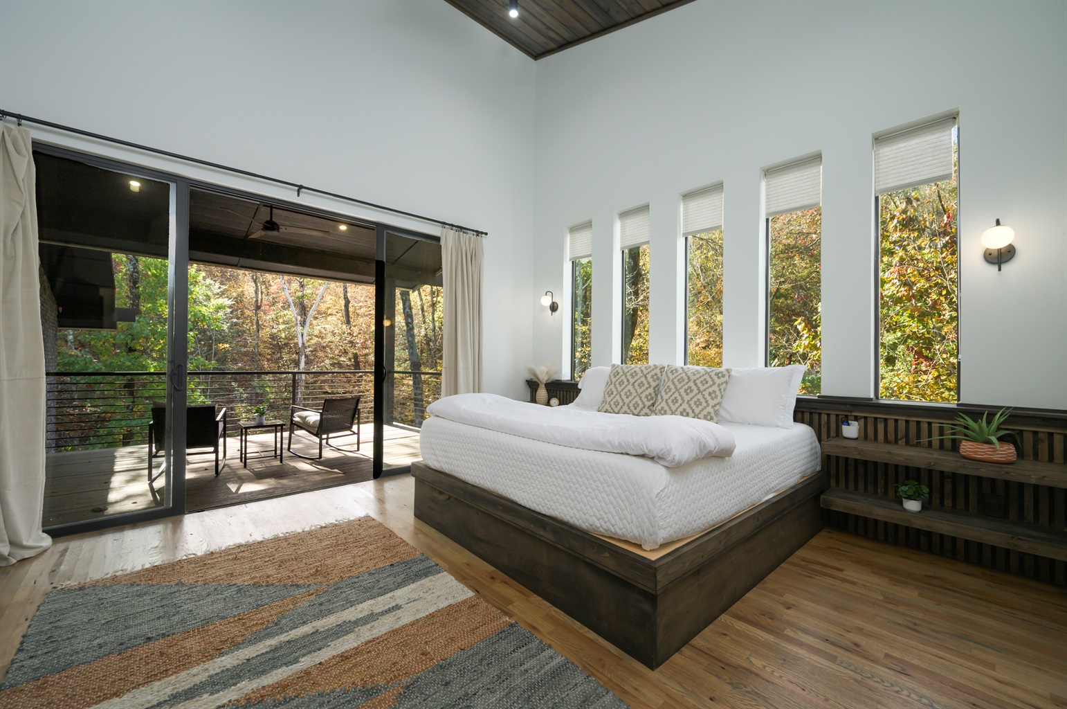 ✔ Floor-to-ceiling slat wall and expansive windows
