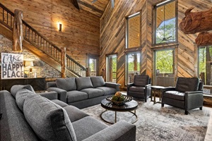 5 Bedrooms • 5 Bathrooms 5 Baths • Sleeps 2-18Welcome to your luxury lodge in Hochatown, where timeless craftsmanship meets modern comfort. Surrounded by the tall pines of the Ouachita National Forest, this spacious retreat is perfect for large families, multiple couples, or group getaways seeking relaxation, entertainment, and nature’s beauty.