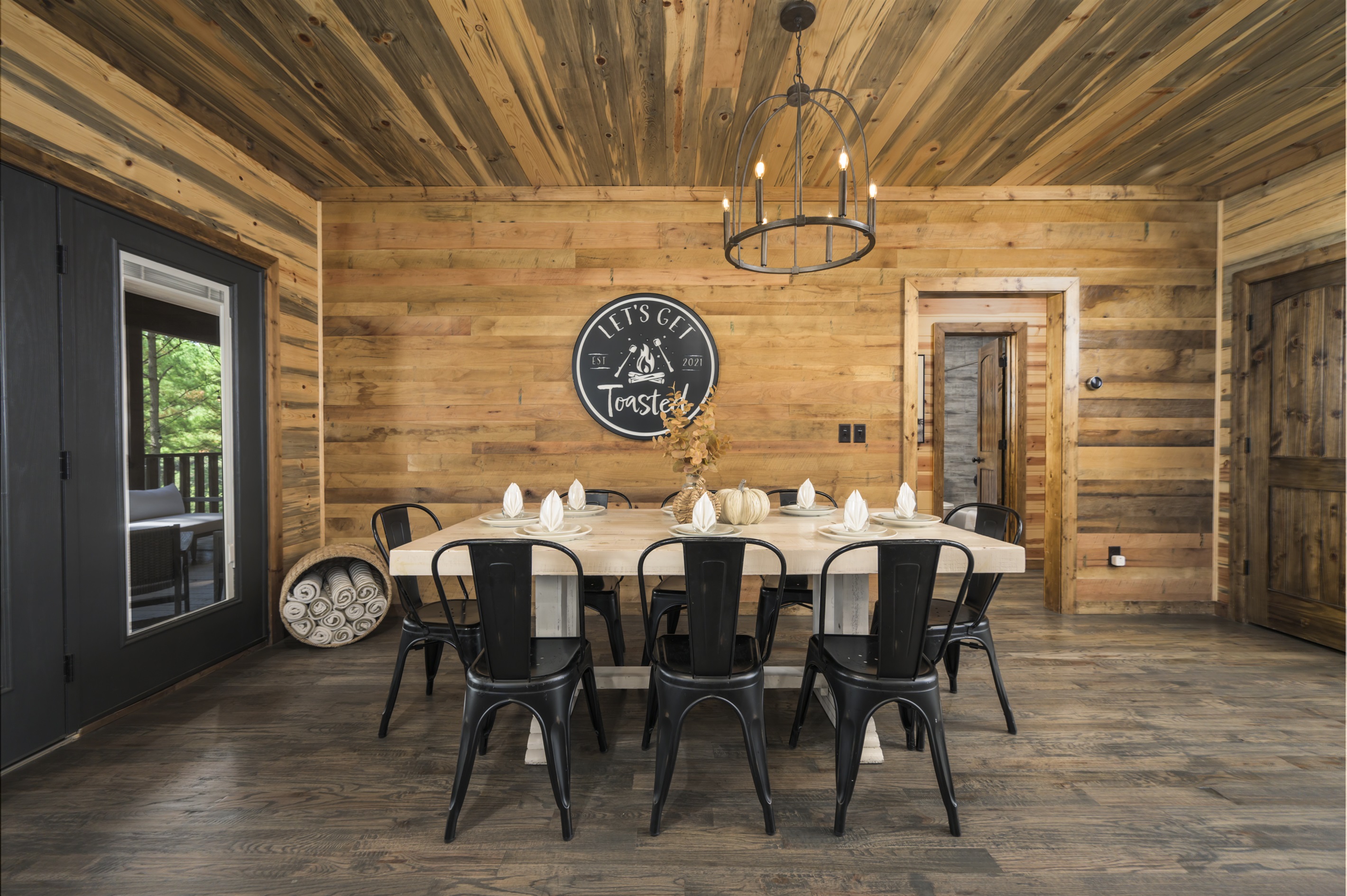 Welcome to Let's Get Toasted! (S'mores, that is!). This new luxury cabin offers high-end comfort in a beautiful rustic setting. Nestled among the pines this retreat offers fantastic wooded views and is conveniently located near all the best restaurants, activities, and park amenities.