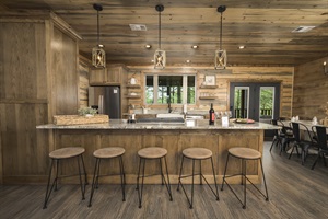 Situated at the top of Pine Hills and conveniently located, Let's Get Toasted! is a spectacular luxury retreat! The property features everything from a full kitchen, massive stone floor-to-ceiling fireplace, and bunk room… to an amazing deck with wooded views. In addition, services like a private chef, masseuse, or housekeeping can be added. And that's not to mention the luxury details such as fine linens and in-home entertainment. Experience all Hochatown has to offer in this immaculate cabin that sleeps 20!