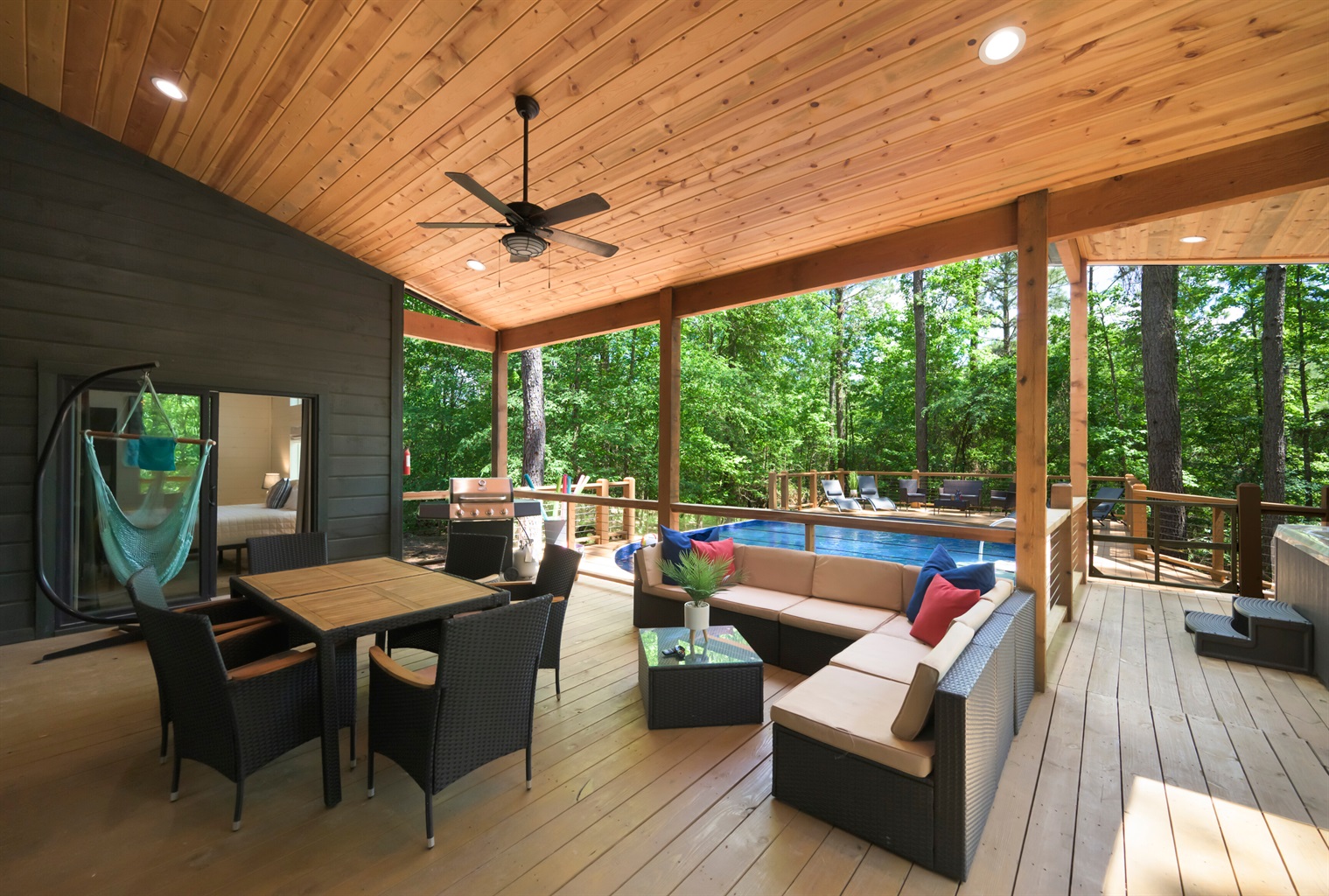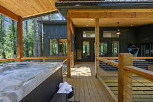 ✔ Hot tub is thoughtfully placed at the end of the expansive deck