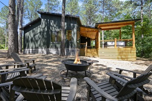 Step inside to a beautifully designed interior with everything you need to relax and recharge. Outside, you'll find a private patio with a bubbling hot tub, a cozy firepit with seating for 8, and ambient string lights for magical nights under the stars.