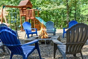 The elevated back deck welcomes you to embrace the sunrise and start your day with tranquility. It's the perfect spot to lose yourself in a book while possibly catching a glimpse of deer below. After a thrilling day of hiking or lake adventures, surrender to the evening's enchantment in the hot tub, gazing at the mesmerizing starlit sky. Allow the crackling firewood provided to set the cozy ambiance at the fire pit, where seating for 10 ensures cherished moments while keeping an eye on the children playing at the nearby playground.