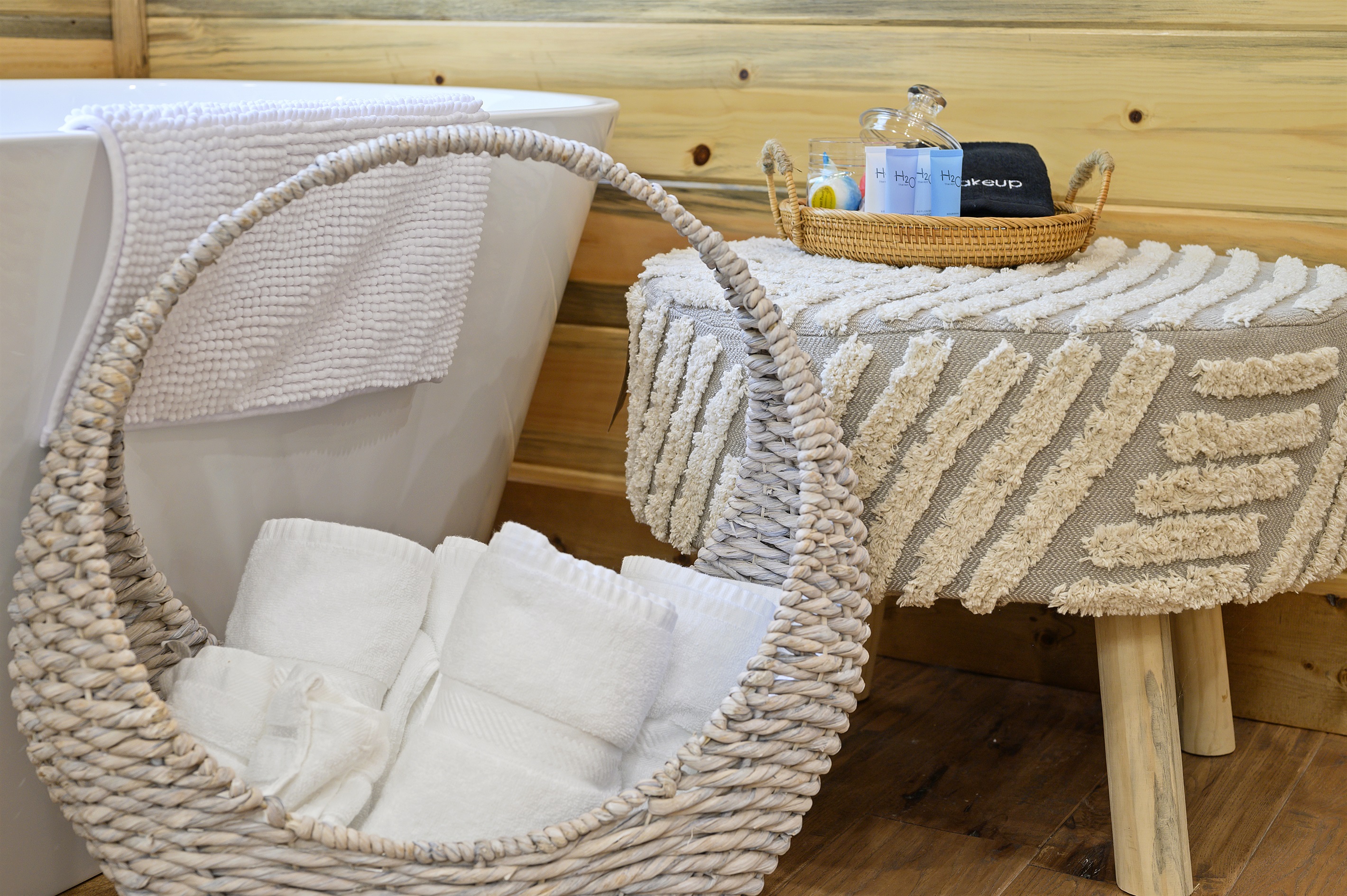 A starter supply of paper towels, toilet paper, bath soap, dishwashing liquid, trash bags, dishwasher tablets, laundry soap, coffee, coffee filters, and salt & pepper will be provided for your stay. All cabins have fully equipped kitchens, washers/dryers, towels, and linens.