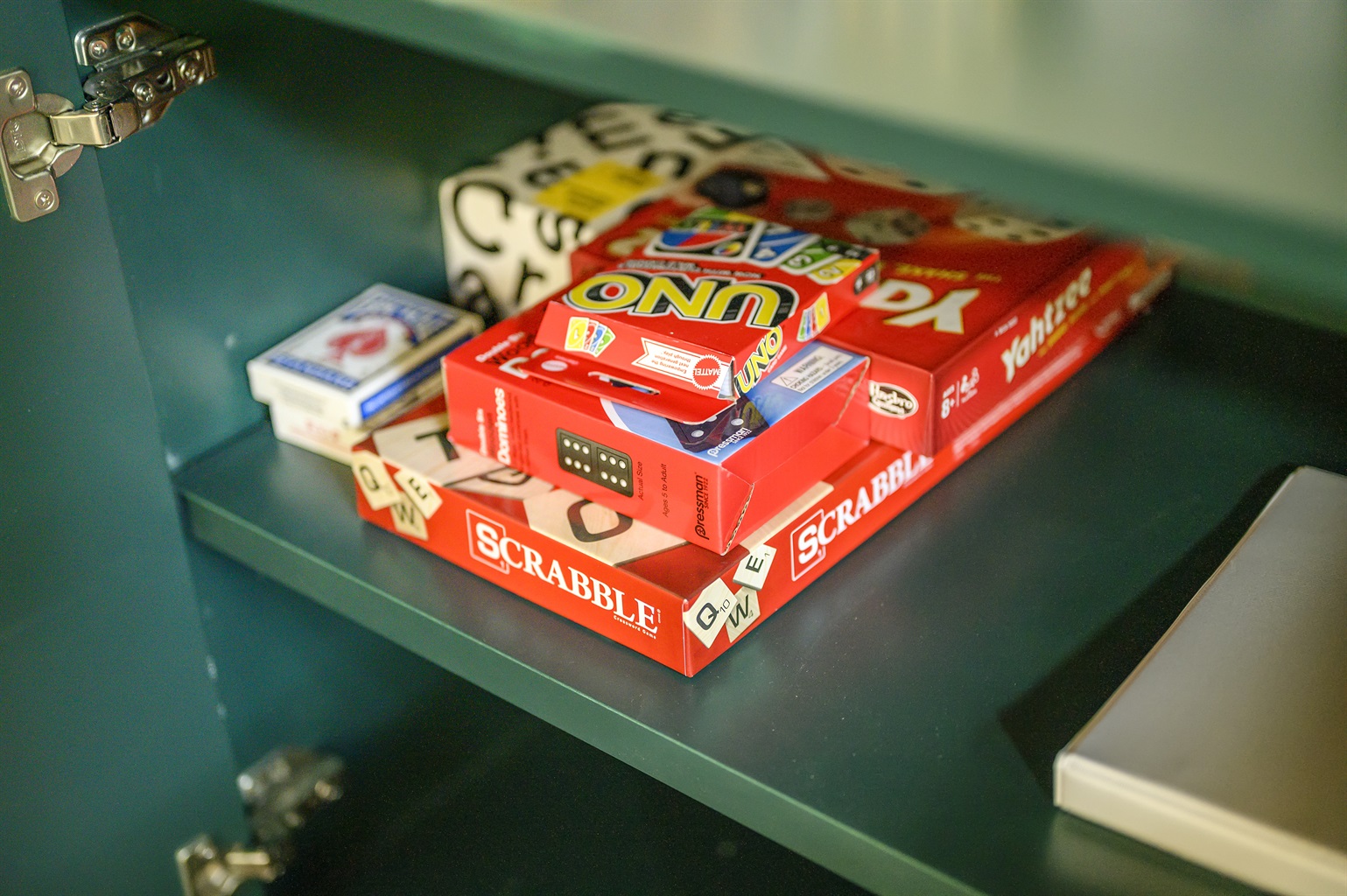 The living room is the heart of the house and is furnished to provide you with a place for great conversations, Netflix binges, or that perfect afternoon nap. The large sectional has deep cushion seating for maximum comfort and can seat up to 8 people! Plus, there is additional seating so there’s ample room for the whole gang. Enjoy our Smart TV with Sonos soundbar which is great for watching movies or streaming music. Are nights getting cooler? Our electric fireplace provides nice heating and great aesthetics for that just-right social media post.