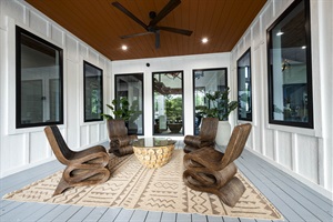 The expansive 2,000-square-foot deck space is tailor-made for both families and larger groups, offering a range of seating options to suit your needs. You'll find an intimate seating area for four, complete with modern loungers for relaxation. For those late-night gatherings and conversations, there's ample seating for eight, ideal for enjoying cocktails under the moonlight. Take in the breathtaking sunset views while savoring a meal beneath the starry night sky at the outdoor dining table. For the ultimate relaxation, the hot tub has been thoughtfully placed in the corner of the deck, providing the perfect spot to unwind amidst soothing bubbles under the celestial canopy.
