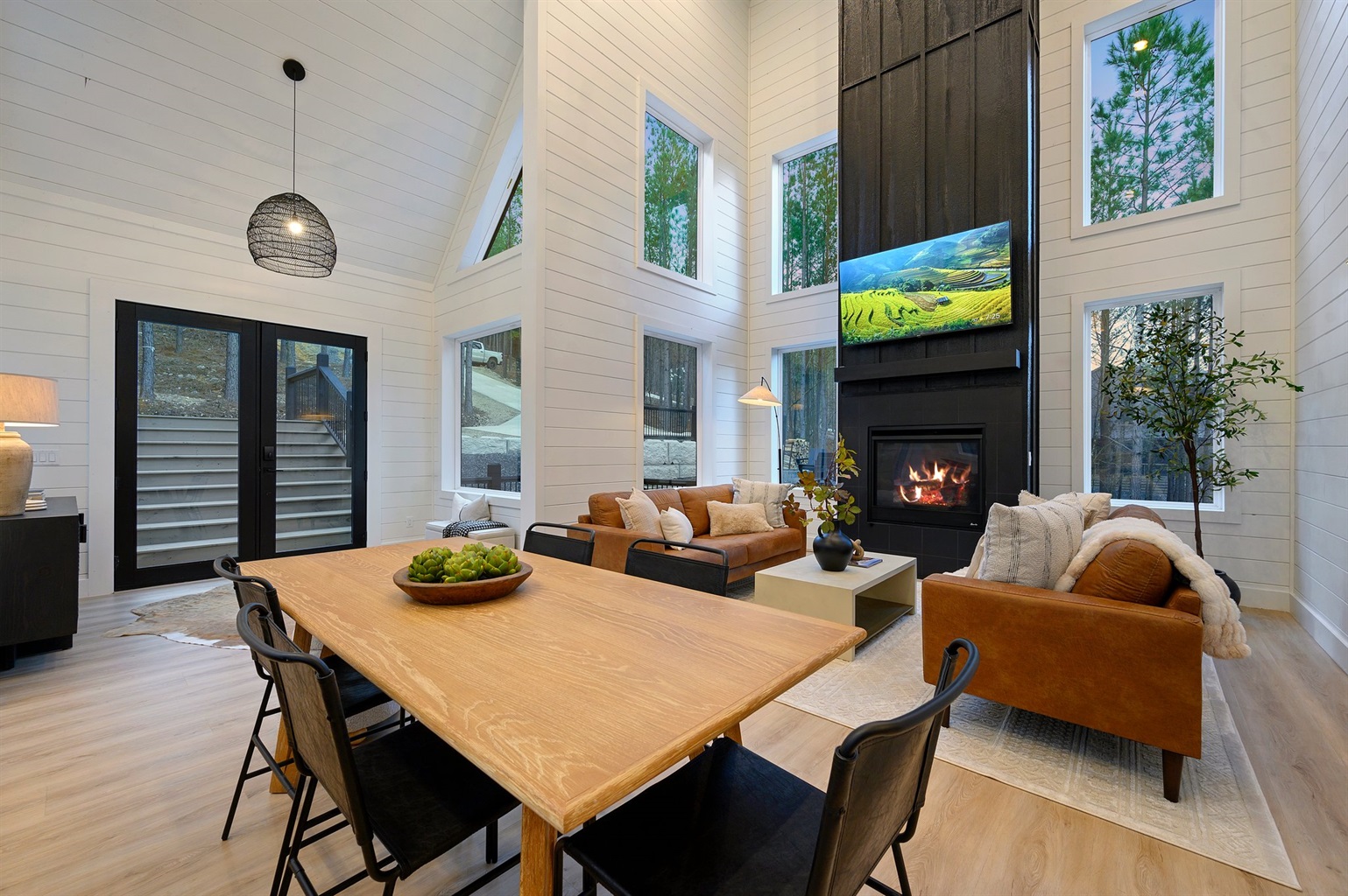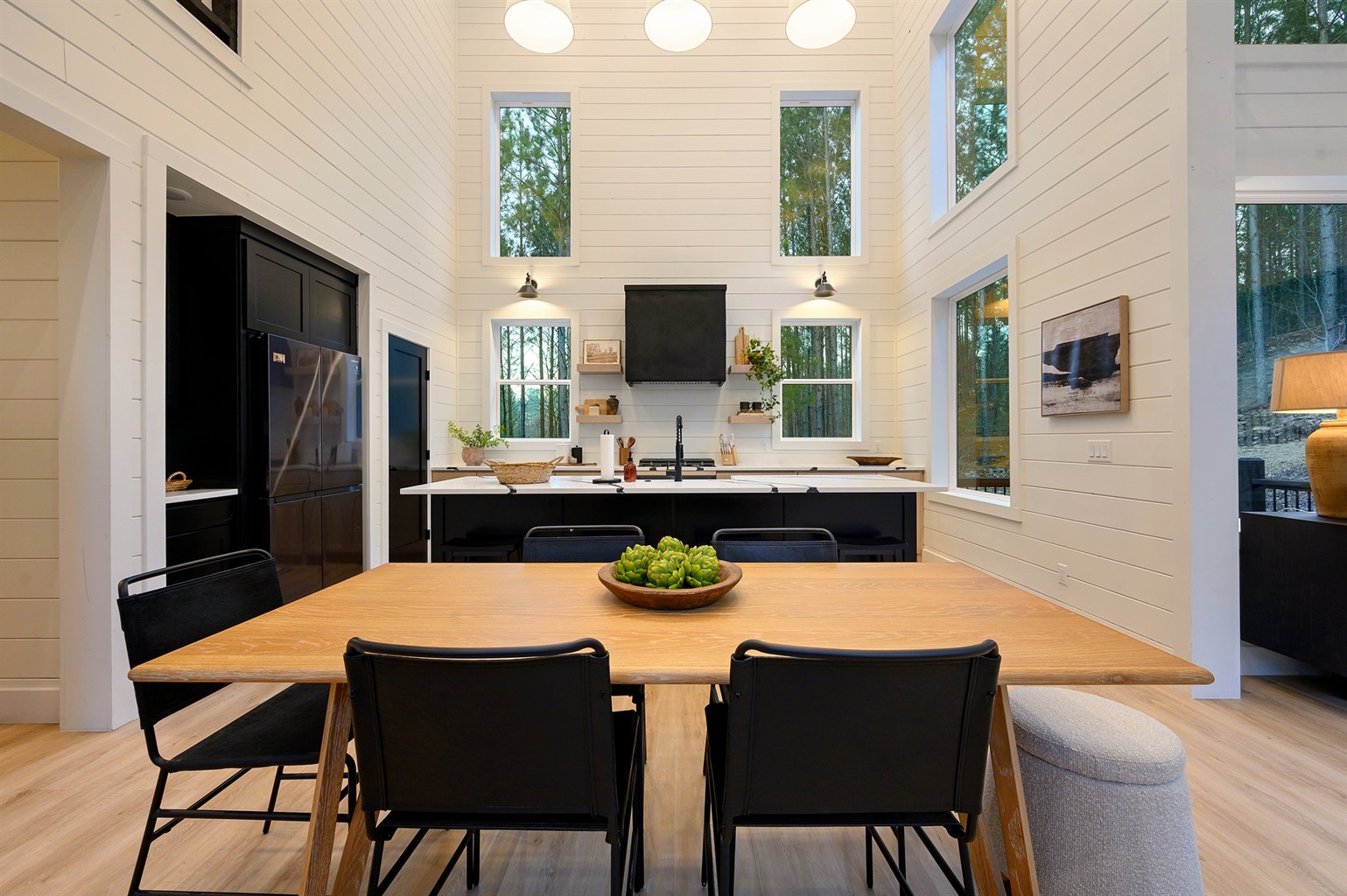 As you arrive, you'll be greeted by the elegant front doors, inviting you into a bright vestibule that sets the tone for the luxury that awaits. Step into the expansive ceilings of the kitchen and living room, where you'll find a fully stocked kitchen equipped with everything you need to whip up delicious meals, including a Keurig K-Duo Single Serve K-Cup Pod & Carafe Coffee Maker for your slow and relaxing morning coffee. Dine at the island or the beautifully appointed dining table nestled between the kitchen and living areas.